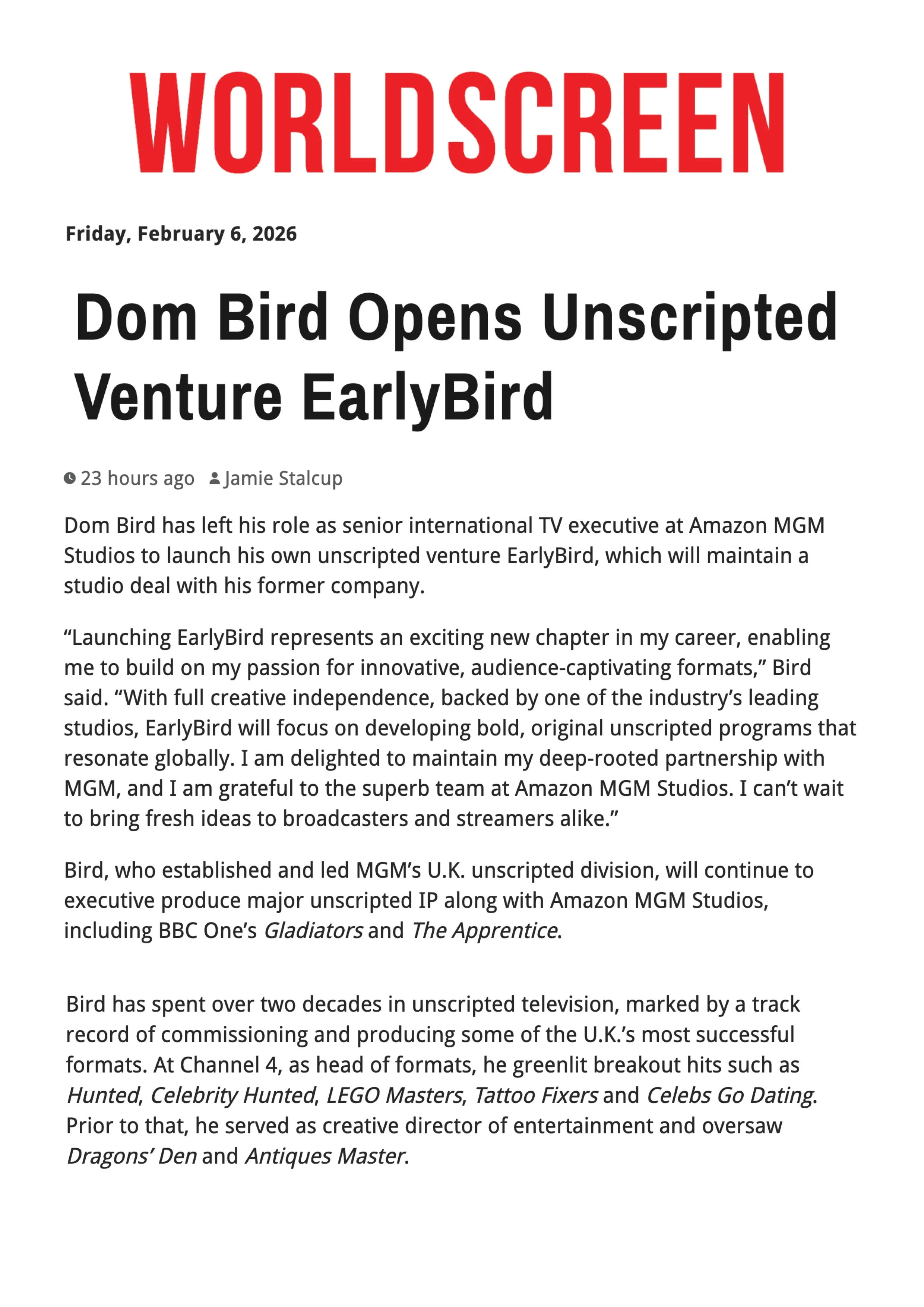 ©2026 EarlyBird Media Ltd